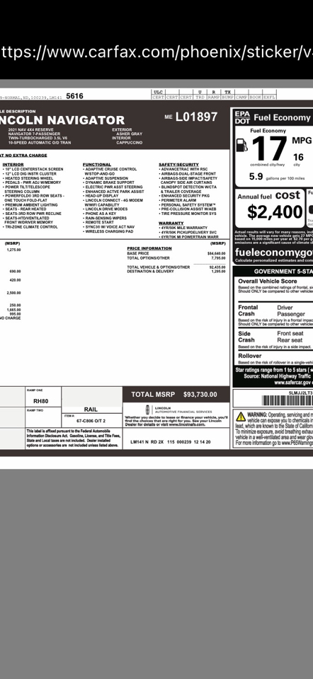 Vehicle Inquiry for 2021 Lincoln Navigator Reserve 4WD